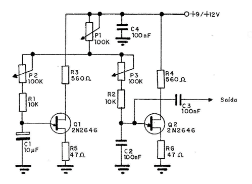 Q1, Q2 – 2N2646 – transistores unijuntura