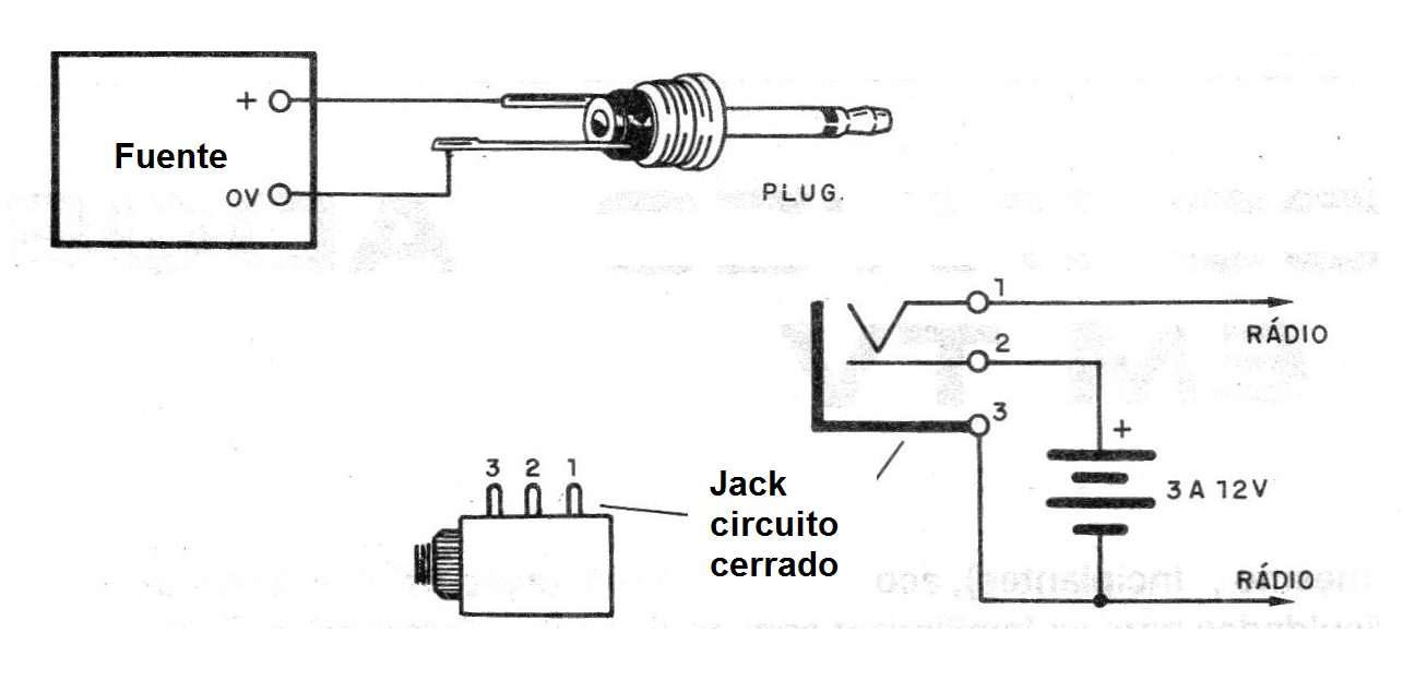 En la figura 3 mostramos el modo de hacer la adaptación para la radio o calculadora usando un jack tipo "circuito cerrado".