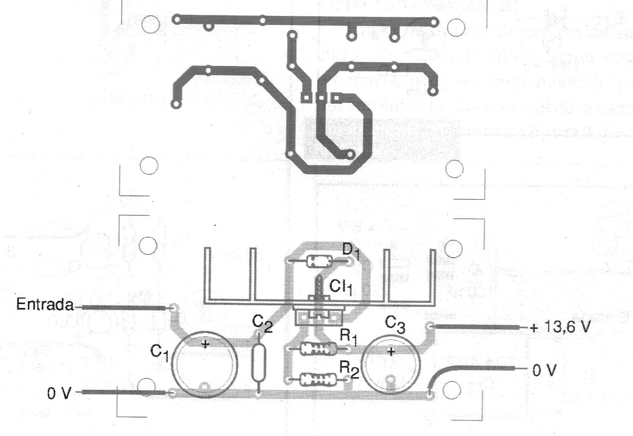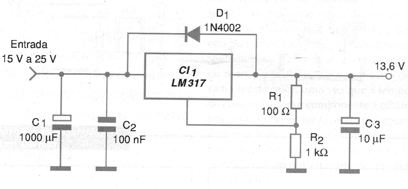 El circuito mostrado en la figura 1 es ideal para obtener una tensión regulada de 13,6 V para alimentación en la bancada de equipos de uso móvil, normalmente operando con baterías automotrices. La corriente máxima de salida es de 1,5 A, determinada por el circuito integrado LM317.