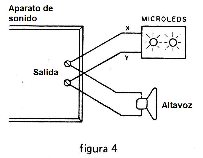 En la figura 4 tenemos el modo de conectar el circuito a la salida de un aparato de sonido.