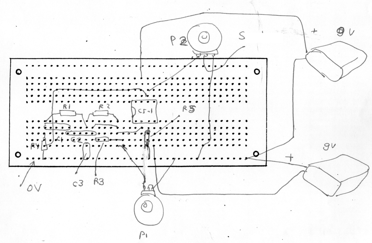Para comprobar el funcionamiento de este circuito conecte en su salida un transductor piezoeléctrico de alta impedancia o la entrada de un amplificador de audio.