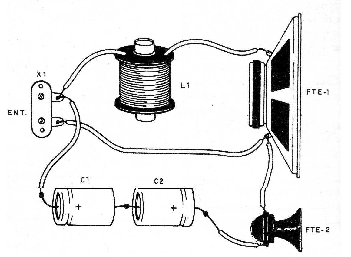 El sistema puede funcionar con altavoces de 4 ó 8 ohms. La bobina está formada por 150 espiras de hilo 22 o 24 AWG en un carrete de aproximadamente 3 cm de altura con un pequeño bastón de ferrita en su interior.