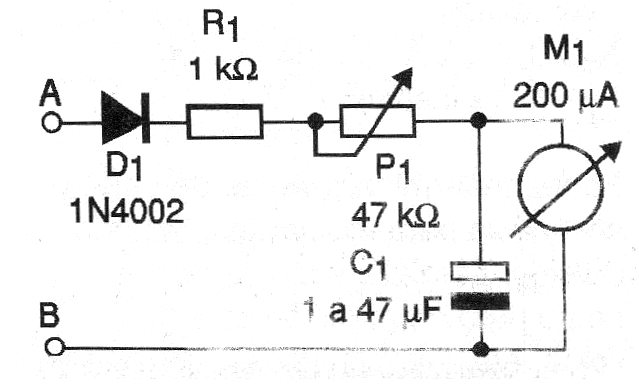 El diodo admite equivalente como el 1N4148 o 1N4007. El trimpot es común, el resistor es de 1/8 W o mayor. Dependiendo de la inercia deseada o velocidad de respuesta del instrumento, el capacitor C1 puede ser cambiado en el rango de valores que va entre 1 uF hasta 100 uF.