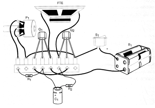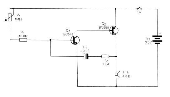 Básicamente el proyecto consiste en un oscilador donde la frecuencia tanto es determinada por C1 (que puede ser alterado) como por el ajuste de P1 (que funciona como "acelerador").
