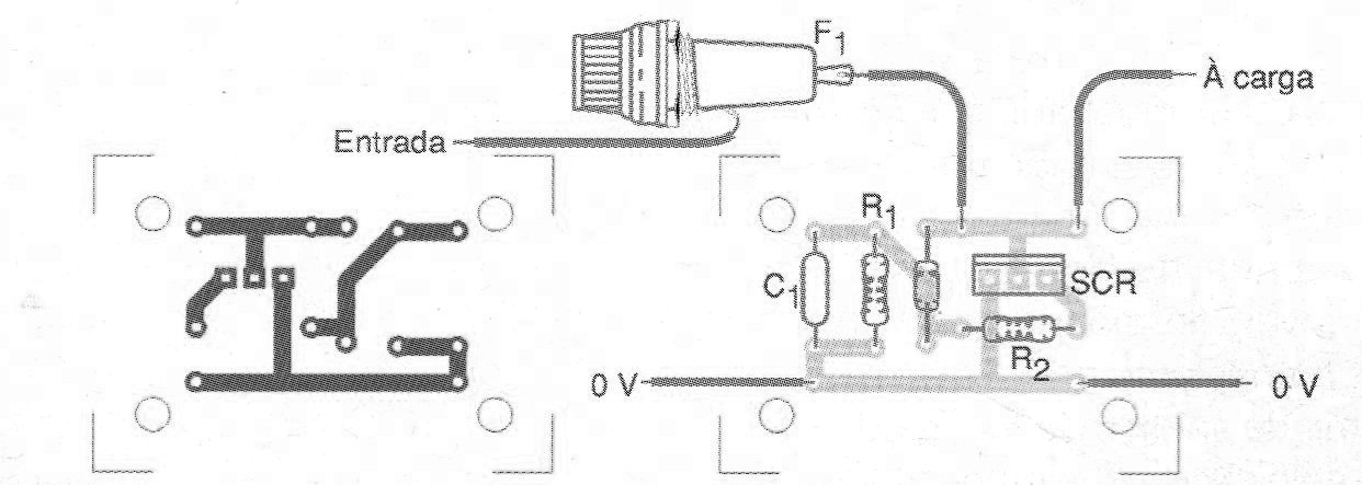 Esta acción rápida de interrupción del circuito puede ser importante en los casos en que tenemos un aumento lento de la corriente en caso de problemas, lo que puede llevar a los componentes más frágiles la quema. Vz es un zener de 400 mW o más y el SCR TIC106 no necesita radiador de calor ya que el tiempo de conducción de este componente es muy pequeño.