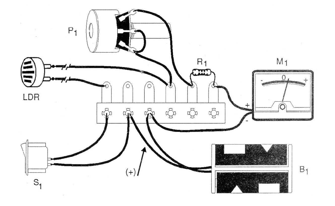 Este sensor óptico, que en realidad es un fotómetro simplificado, indica en un instrumento la intensidad de la luz que incide en un LDR. Los LDR son muy sensibles y si el LDR se coloca en un tubo con una lente, incluso el brillo de estrellas puede ser medido.