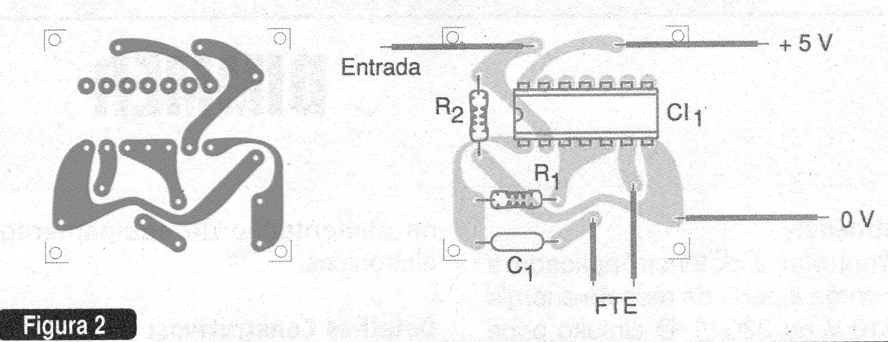 En la figura 2 tenemos una sugerencia de placa de circuito impreso para el montaje aprovechando medio CI.