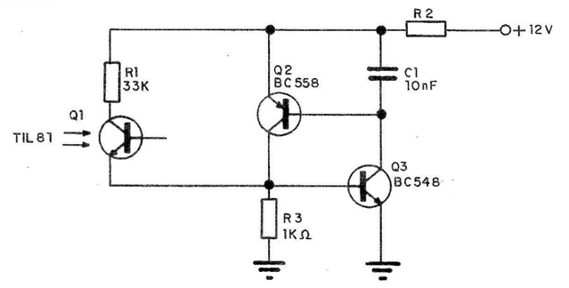 Cuando la luz cae sobre el fototransistor, conduce y retroalimenta a través de Q1 el interruptor regenerativo. Con este circuito, podemos obtener una característica de resistencia negativa, lo que hace posible su uso para activar SCR y otros dispositivos.