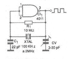El circuito mostrado en la figura 1 puede generar señales rectangulares (compatibles con lógica) entre 100 kHz y 2 MHz sirviendo como reloj para microprocesadores, microcontroladores y otras aplicaciones similares.