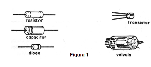 Al lado de estos componentes tenemos los que simplemente "ayudan" a las válvulas y transistores a funcionar convenientemente, ofreciéndoles las corrientes en las intensidades que ellos necesitan para funcionar, modificando la forma en que las corrientes deben ser entregadas, que son los componentes denominados pasivos. En este grupo tenemos los resistores, los capacitores los diodos, etc. (figura 1).