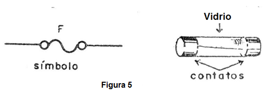 Los fusibles usados en radio difieren de los fusibles utilizados en las instalaciones eléctricas domiciliares tanto en tamaño como en corriente. Los fusibles usados en los radios se rompe con corriente de hasta unos pocos amperios, siendo formados por un pequeño tubo de vidrio, como muestra la figura 5. En esta misma figura tenemos el símbolo adoptado para representar este componente.
