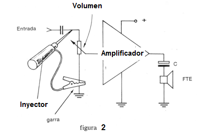 La señal del inyector se aplica inicialmente a la entrada del amplificador, como se muestra en la figura 2.