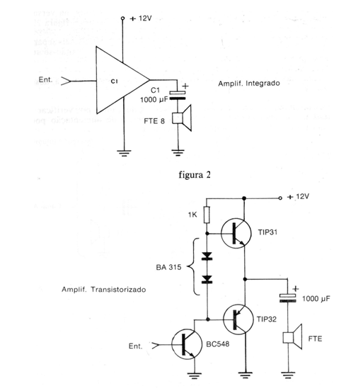 Para el caso de amplificadores con circuitos integrados, en la versión estéreo, tenemos dos canales independientes, como muestra la figura 3.