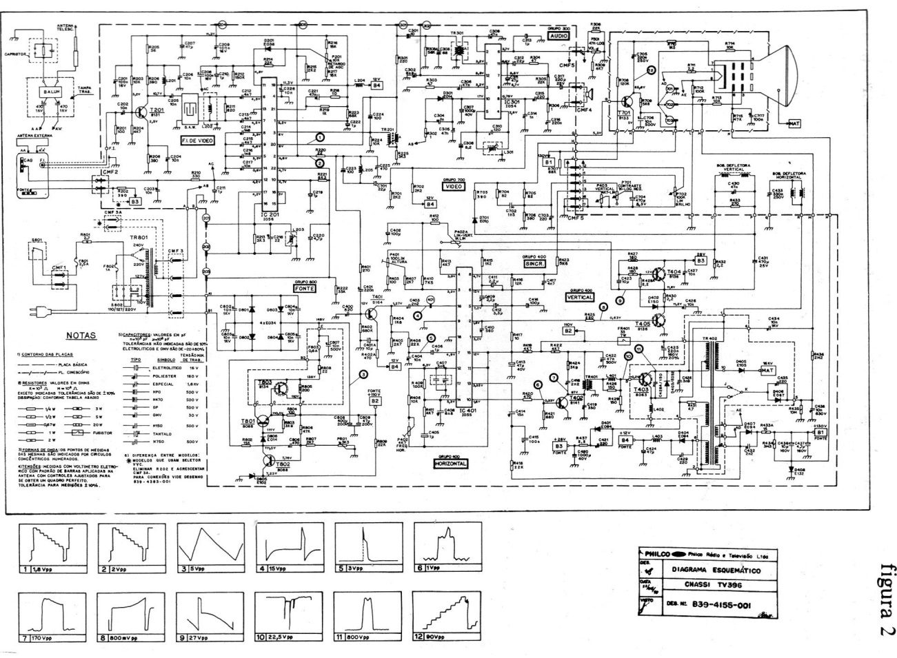 b) Televisores modernos con transistores y circuitos integrados en las configuraciones básicas o etapas difieren de modelo para modelo, lo que exige del técnico un análisis del esquema antes de intentar la reparación. Para cada tipo de televisor, los componentes que pueden presentar problemas con un mismo síntoma son diferentes. Por lo tanto, no hay un procedimiento general, ya que cada televisor es un problema diferente.
