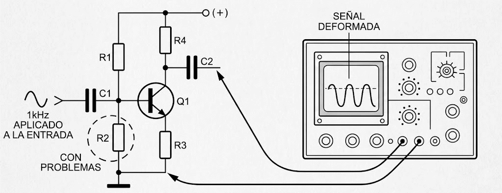 Al comparar las mediciones de tensión con los resultados de esta prueba, podemos saber si el problema es la polarización o el propio transistor.