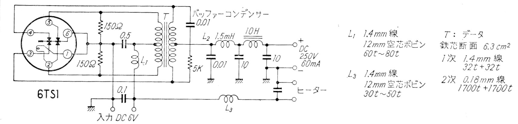 Este circuito de una documentación antigua muestra cómo se obtiene alta tensión para valvulados alimentados por la batería de un coche. En el caso, se utilizaba un vibrador mecánico, que aún se puede encontrar en casas especializadas en la recuperación de coches antiguos.
