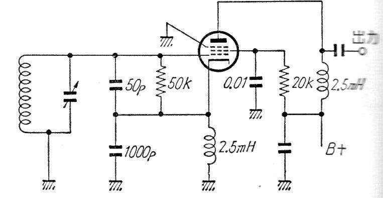 Encontramos este circuito en una documentación japonesa antigua. La bobina depende del rango de frecuencias deseado y la tensión de alimentación depende de la válvula.