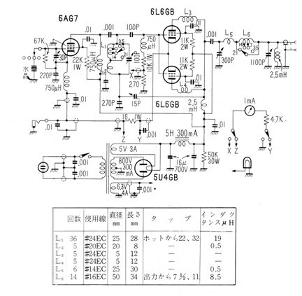 Este transmisor para radioaficionados fue encontrado en una publicación japonesa de los años 60. Aunque el texto que muestra las bobinas está en japonés es posible deducir fácilmente el número de espiras de hilo y diámetro. Se incluye la fuente de alimentación.