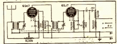 Este circuito sintoniza estaciones de onda media y puede usarse con cualquier amplificador de potencia. El circuito se encontró en una documentación de 1945. No se proporcionó la fuente.