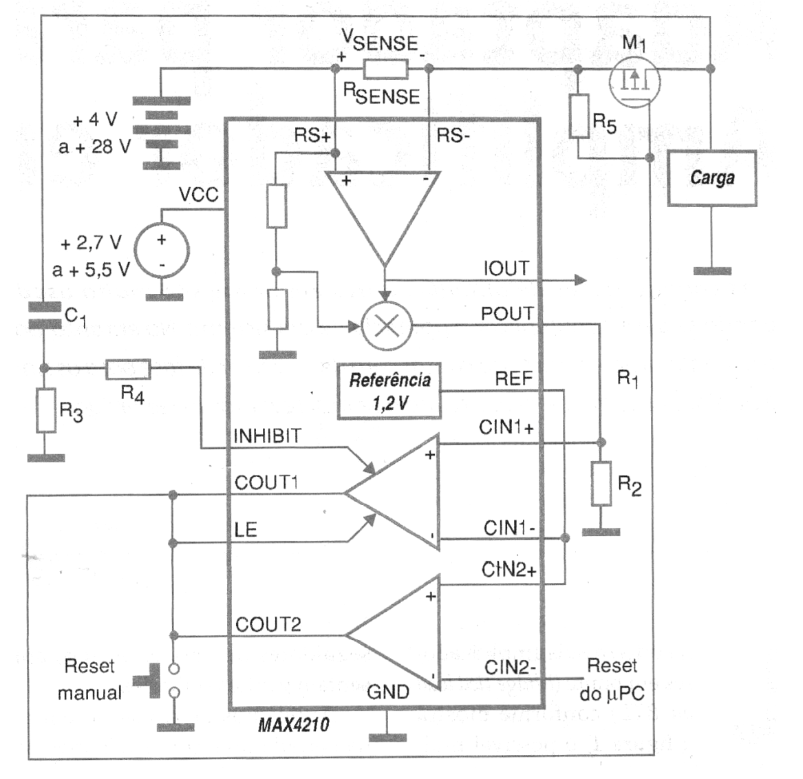 La Maxim dispone de circuitos que reúnen estas funciones, posibilitando así la elaboración de circuitos de protección. Uno de estos circuitos es el MAX4210 que se muestra en la figura 2.