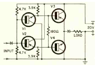 Esta interesante etapa de salida clase B sin transformador se encontró en una solicitud de patente publicada en la revista Radio Electronics en enero de 1962. Los transistores no estaban indicados.