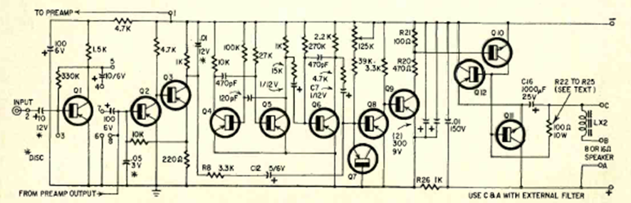 Este es quizás uno de los primeros circuitos de este tipo publicados en una revista. Al menos es el primero que encontré. Apareció en un Radio Electronics de septiembre de 1967 como un amplificador de modulación de ancho de pulso. Una configuración muy interesante para estudiar. El artículo daba todos los detalles del montaje.