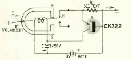 Este disyuntor utiliza un dispositivo electromecánico para abrir un circuito cuando aumenta la corriente. El circuito de pie de una Radio Electronics de noviembre de 1957.