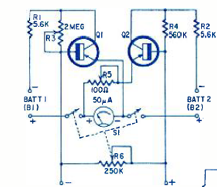 Este circuito adaptador para medir tensiones se encontró en Radio Electronics desde abril de 1966. El instrumento sensible de 50 uA se puede reemplazar con la escala de corriente más baja de un multímetro común.