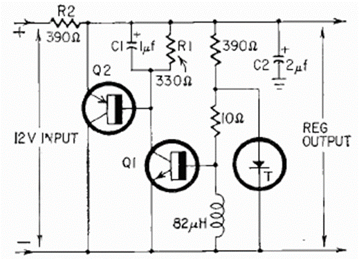 Sí, los diodos túnel también se pueden utilizar en reguladores de tensión, como se muestra en este circuito de Radio Electronics de agosto de 1964. Los transistores son de la época, pero el circuito se puede implementar con equivalentes modernos.