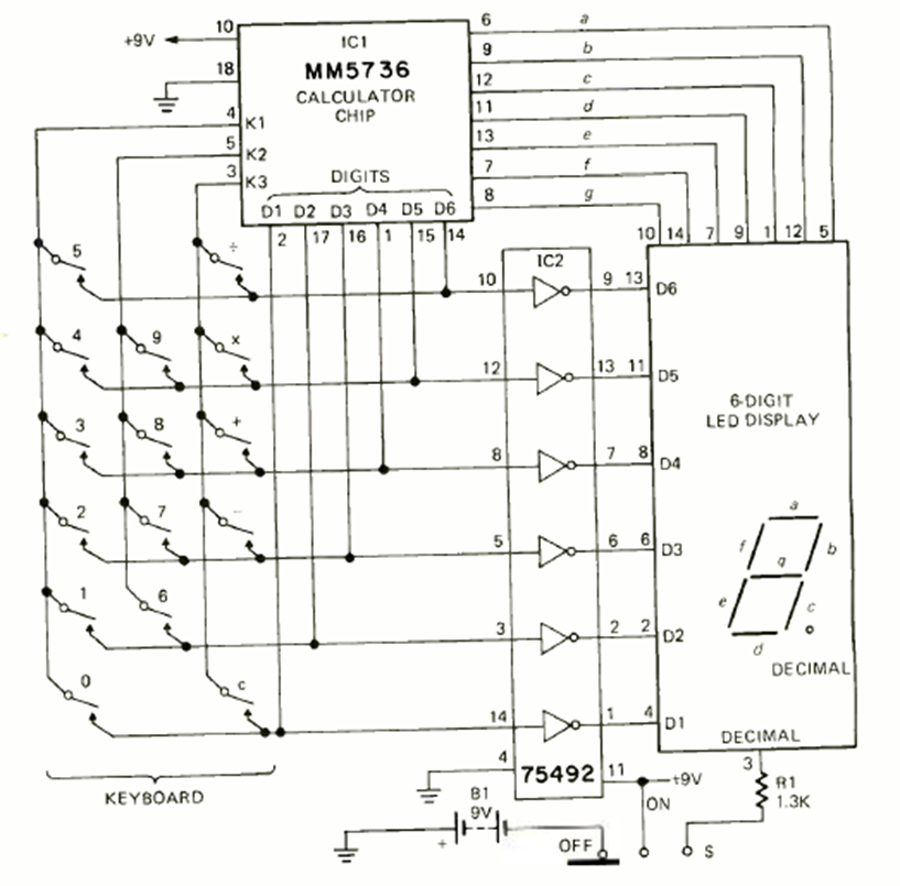 Este circuito lo encontramos en la revista Radio Electronics de noviembre de 1975. Utiliza un módulo digital de la época que contiene varios ajustes. La fuente debe tener el voltaje indicado.