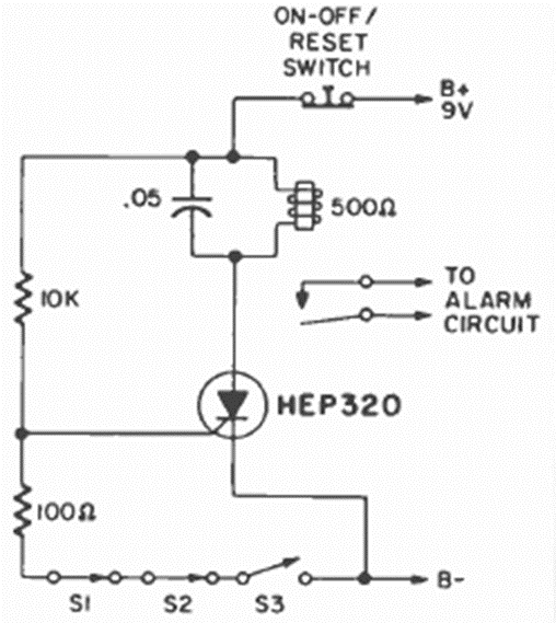 Este circuito, que se encuentra en otra parte de esta sección, es de la revista Radio Electronics de abril de 1971. Tenga en cuenta que hay una caída de 2 V en el SCR conductor al activar el relé.