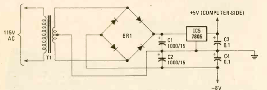 Este interesante circuito fuente simétrico fue encontrado en la revista Radio Electronics de enero de 1981. La corriente máxima es 1 A y el regulador debe estar equipado con un disipador de calor.