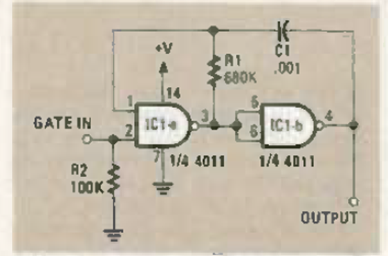 Encontramos este circuito en la revista Radio Electronics de noviembre de 1984. La frecuencia básica viene dada por C1. La alimentación puede ser entre 3 y 12 V.