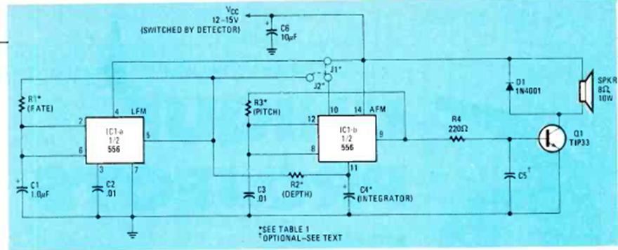 Encontramos este circuito en la revista Radio Electronics de abril de 1982. Contiene una buena etapa de potencia cuyo transistor debe montarse en un buen disipador de calor.