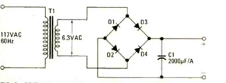 Este suministro no regulado utiliza un único transformador de devanado secundario. El voltaje secundario determina la tensión de salida y los diodos deben estar de acuerdo con la corriente del transformador.