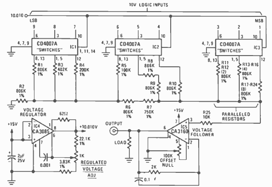 Utilizando circuitos CMOS y amplificadores operacionales de la época, este circuito fue encontrado en la revista Radio Electronics de septiembre de 1977. El circuito se alimenta con una fuente de alimentación de 15 V.
