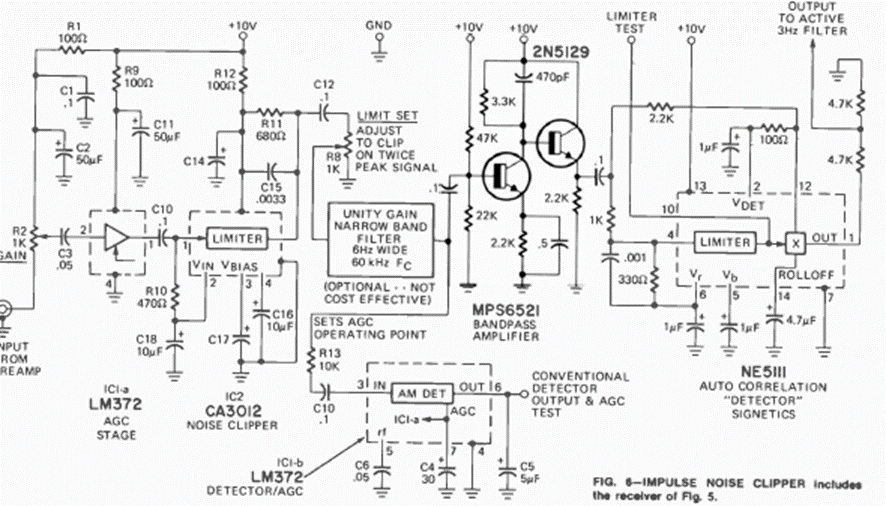 Este circuito receptor para señales de frecuencia ultrabaja apareció en la revista Radio Electronics en agosto de 1973. El preamplificador es el circuito anterior. El artículo daba detalles de la construcción, incluida la antena. El enlace al artículo de la página 48 es: https://www.worldradiohistory.com/Archive-Radio-Electronics/70s/1973/Radio-Electronics-1973-08.pdf