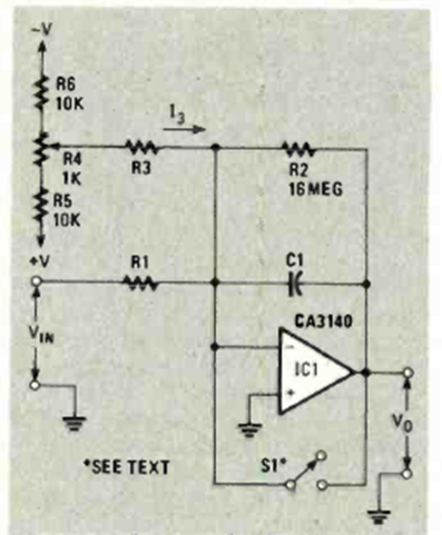 Los valores de R1, R2, R3 y C1 dependen de la señal que se debe integrar. El circuito es de una Radio Electrónica de diciembre de 1984. Se pueden probar otros operacionales.