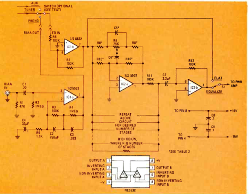 Este circuito se encontró en la revista Radio Electronics de julio de 1982. El circuito integrado es un tipo que se lanzó recientemente en ese momento.