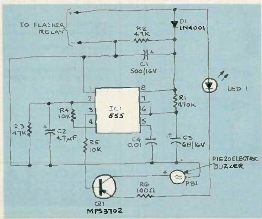 Este circuito con el 555 se encontró en la revista Radio Electronics de junio de 1984. Este circuito detecta un cambio en la señal y puede alimentar un relé u otro sistema de advertencia.