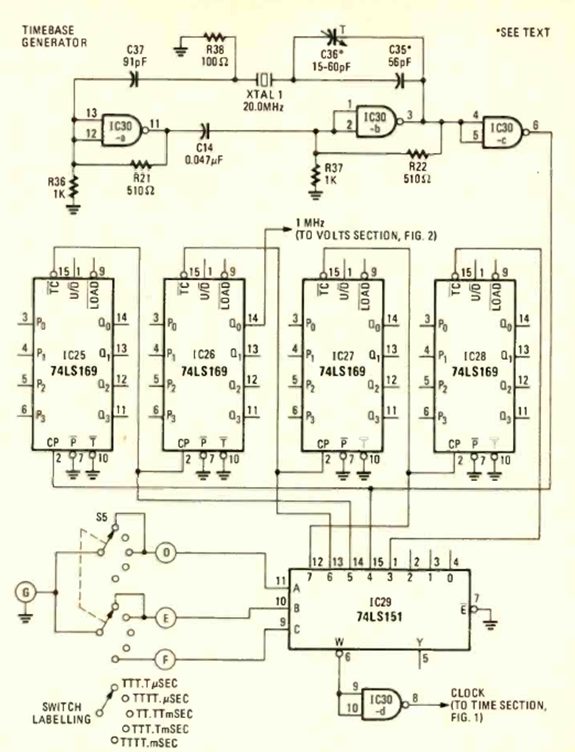 Este contador TTL fue encontrado en la revista Radio Electronics de abril de 1979. El circuito debe alimentarse con 5 V y dispone de un generador de impulsos para fines didácticos o experimentales.