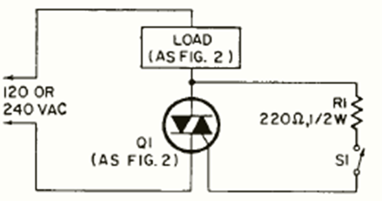 Este simple interruptor de disparo triac con interruptor de baja corriente se encontró en la revista Radio Electronics de junio de 1970. El triac depende de la carga controlada.