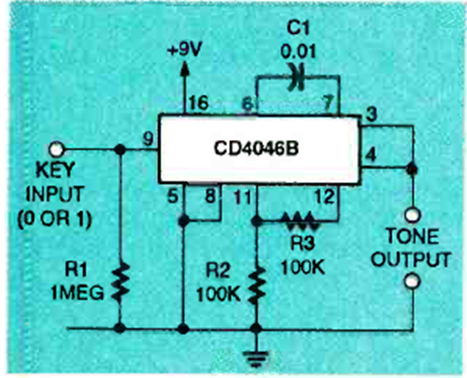 Este circuito de módem que utiliza un PLL 4046 fue encontrado en la edición de octubre de 1994 de la revista Electronics Now. El IC 4046 es poco común hoy en día.