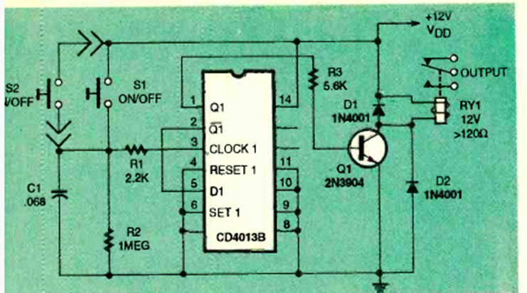 Encontrado en la revista Electronics Now de julio de 1994, este circuito activa un relé hasta 12 V dependiendo de la fuente de alimentación. El transistor puede ser de propósito general.