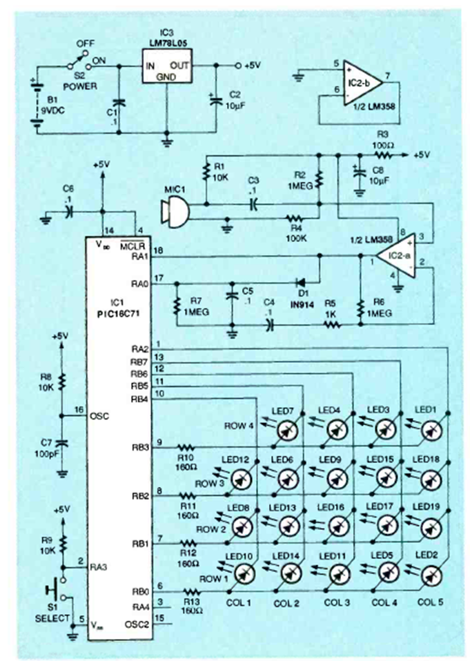 Con este nombre se encontró el circuito de efectos LED presentado en el número de diciembre de 1994 de la revista Electronics Now. El circuito está alimentado por una batería de 9 V.
