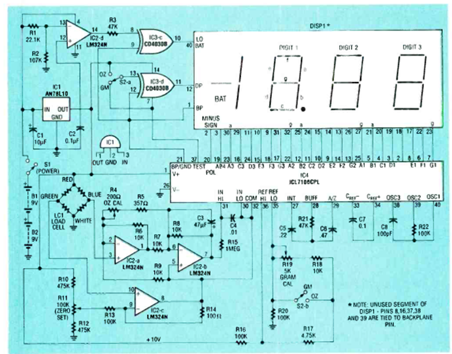 Este circuito es de un artículo que enseña cómo montarlo en la revista Electronics Now de julio de 1993. Utiliza un módulo de pantalla de cristal líquido de la época con 3 dígitos y medio.
