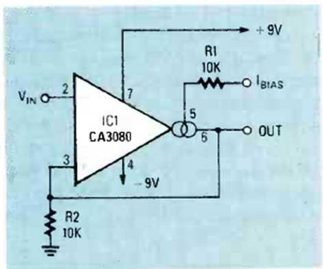 Encontrado en una edición de Radio Electronics de mayo de 1988, este es un disparador Smitt que requiere una fuente de alimentación simétrica. El circuito utiliza un OTA.