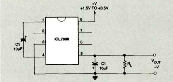 Este circuito de muy bajo consumo se basa en el ICL7860. Lo encontramos en un Electronics Now de abril de 1995. La corriente de salida es muy baja.