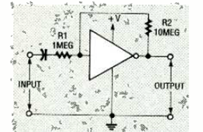 Este amplificador operacional CMOS de ganancia 10 se encontró en la edición de mayo de 1993 de la revista Electronics Now. Es válido para cualquier amplificador operacional de este tipo.