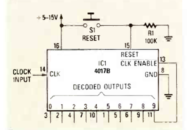 En la figura tenemos la forma de controlar el conteo de un 4017 con un interruptor de inicio y parada.